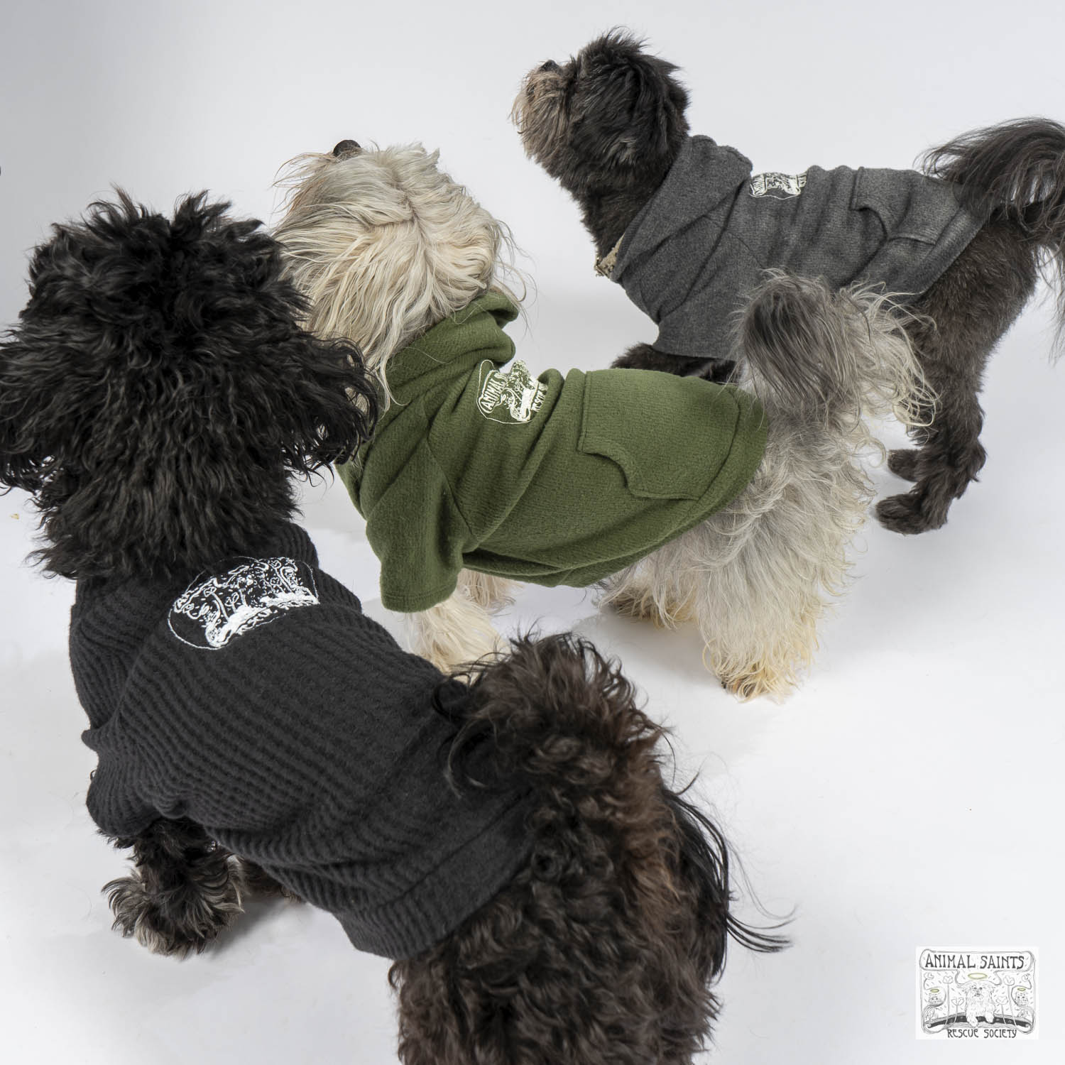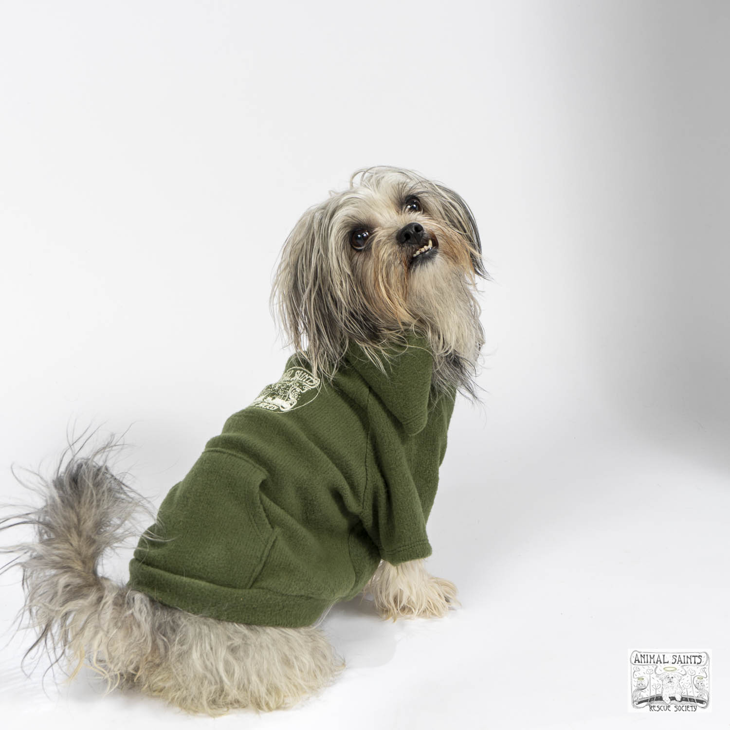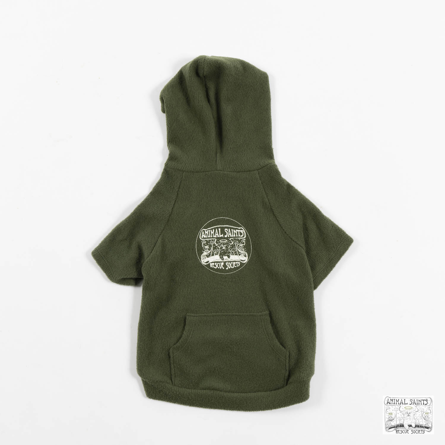 Let’s warm up with a dog hoody. Complete with pockets on the back and screen printed Animal Saints logo. Now you’re displaying your affiliation with rescue excellence – Animal Saints Rescue Society!
