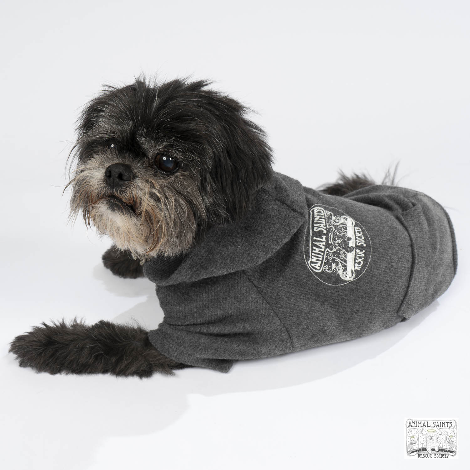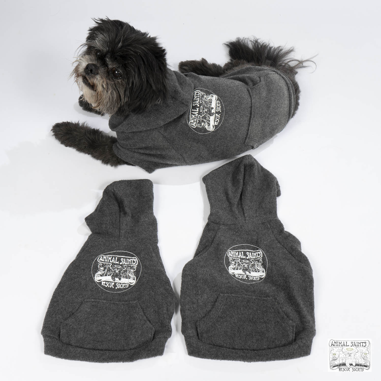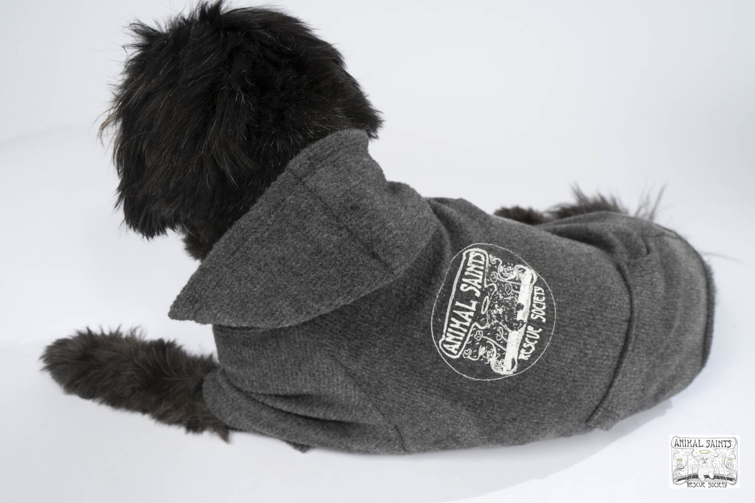 Let’s warm up with a dog hoody. Complete with pockets on the back and screen printed Animal Saints logo. Now you’re displaying your affiliation with rescue excellence – Animal Saints Rescue Society!